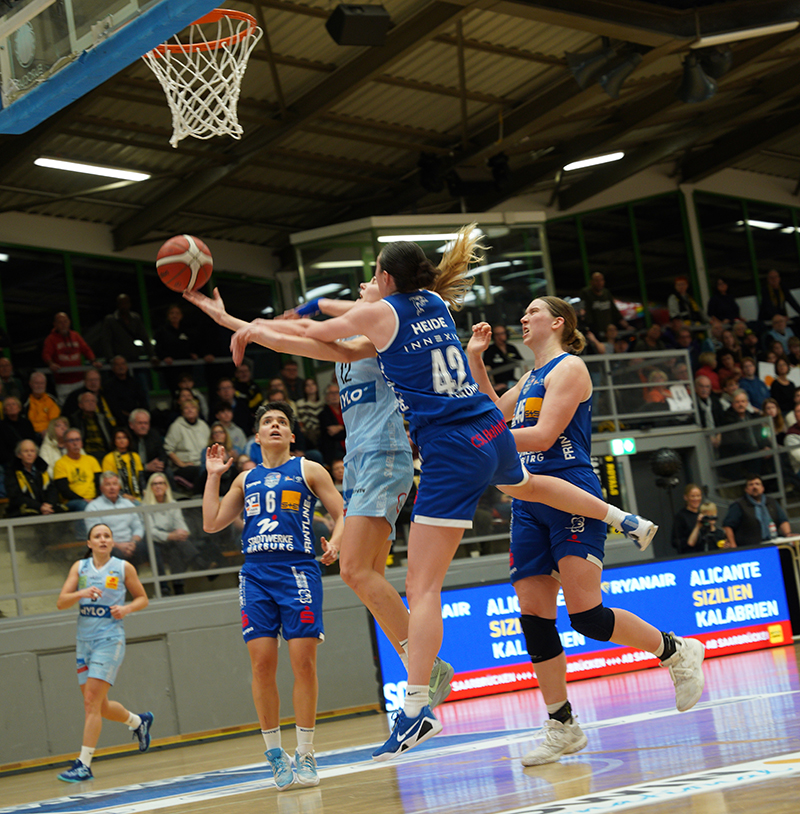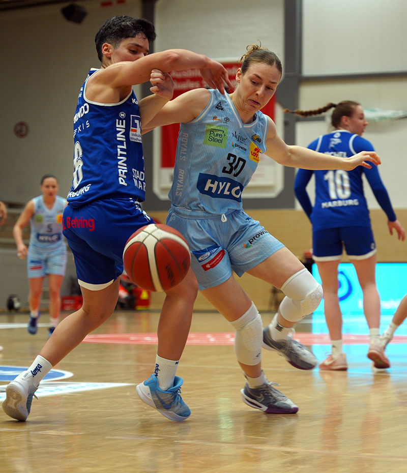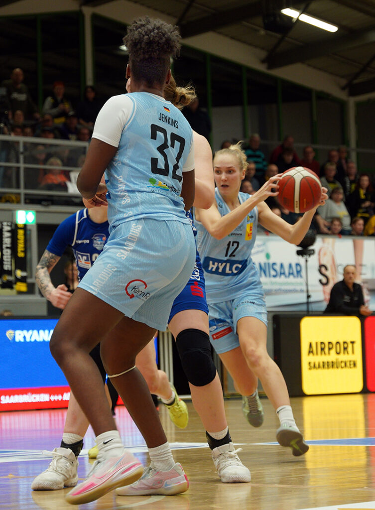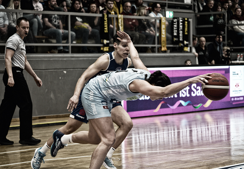 “[…] Die Marburgerinnen gingen hoch motiviert und fokussiert in die Partie in der Stadtgartenhalle. War es doch vom Spielplan her die letzte Möglichkeit, vor der Pokal-Endrunde einen der anderen Teilnehmer zu ärgern. Dass daraus nichts wurde, lag zum einen am Zielwasser, das die Royals getrunken hatten. Dass sie gute Distanzschützinnen sind, war bekannt. Aber 15 erfolgreiche Distanzwürfe – bei 33 Versuchen?? Wahnsinn!! Acht verschiedene Saarlouiserinnen trafen von draußen. Weiterer großer Faktor war das körperliche Spiel der Hausherrinnen, die sich clever und gnadenlos der Linie der Unparteiischen anpassten. Die Hessinnen kamen damit gar nicht zurecht.